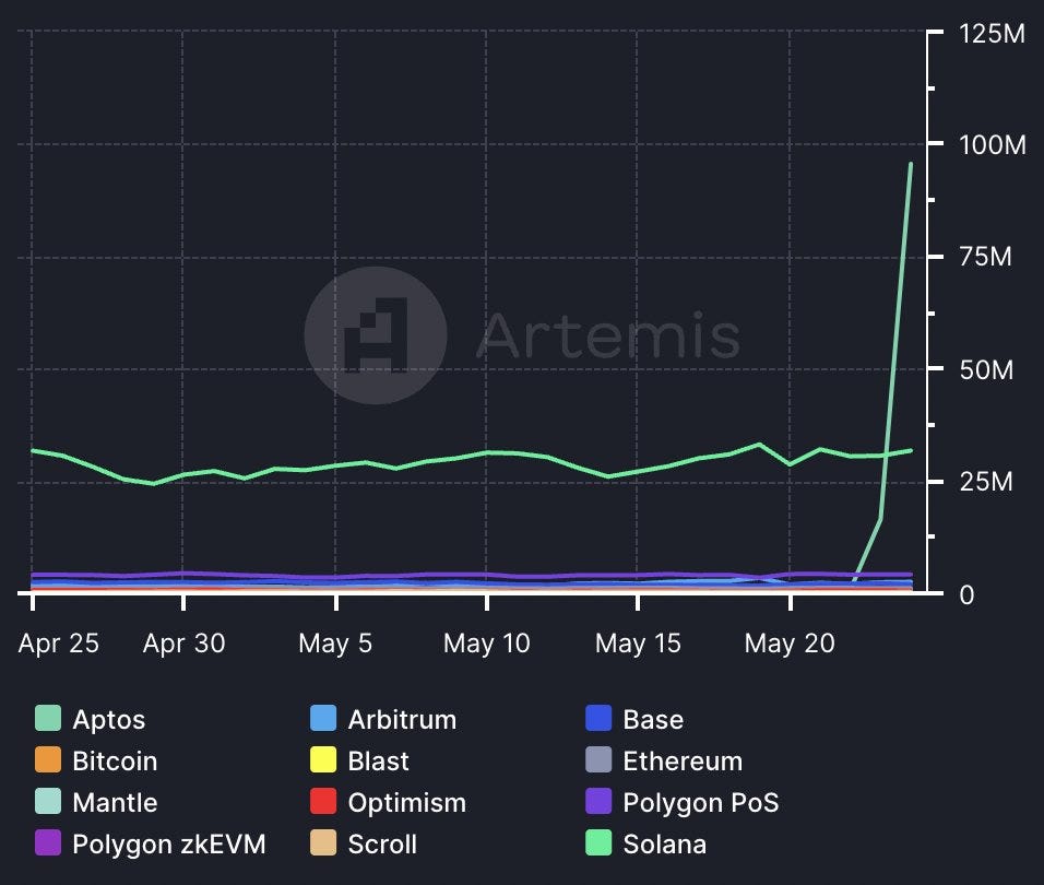 Aptos transactions this week: 249.6M (+2,000%)
