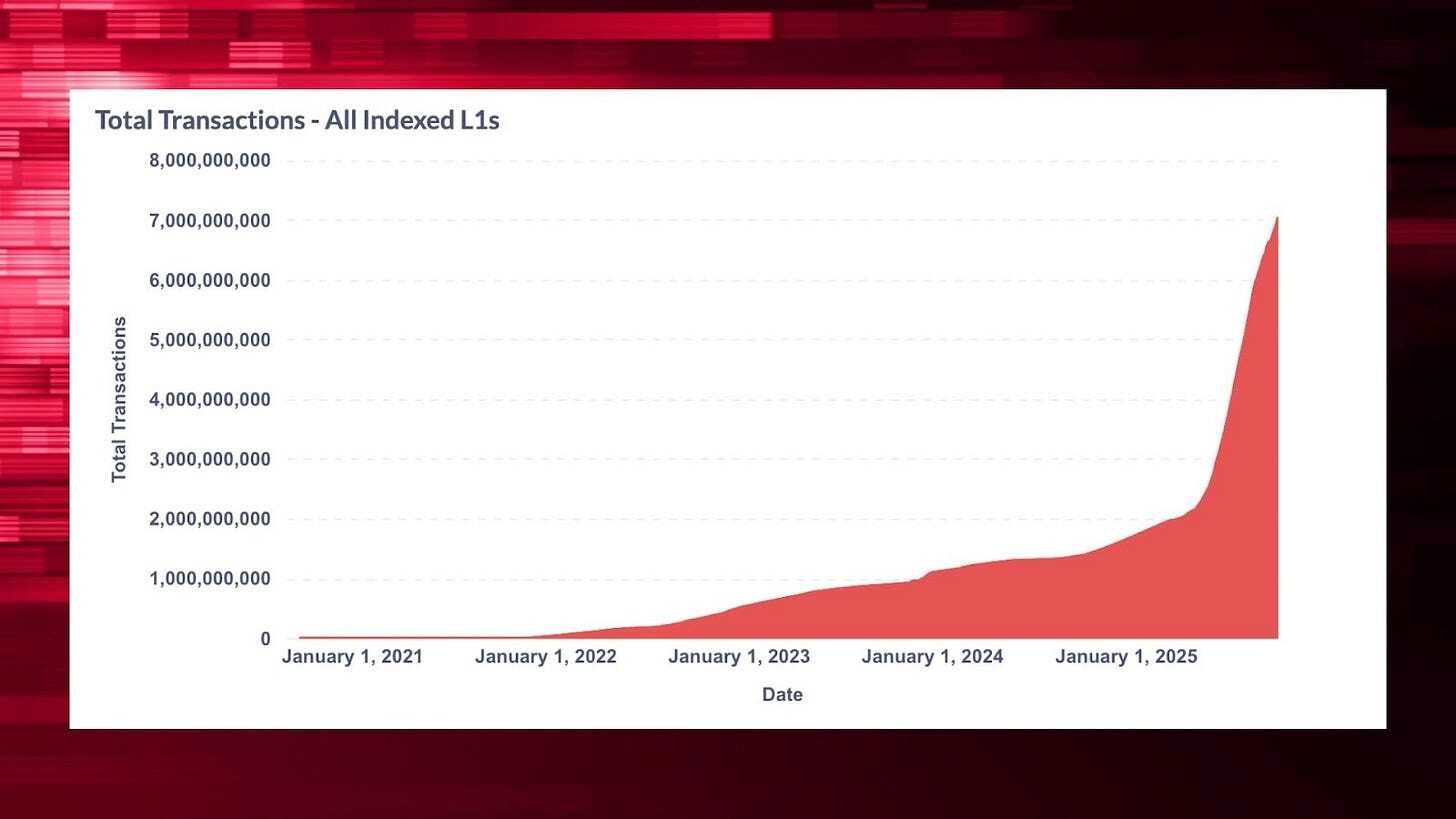 Total transactions on Avalanche have surpassed 7 billion, up from about 2 billion at the beginning of 2025