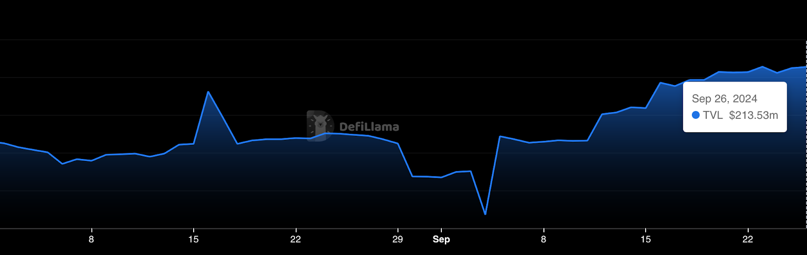 Colend, a lending and borrowing platform on the Core network, hit $213M in TVL, according to DefiLlama (shown below)
