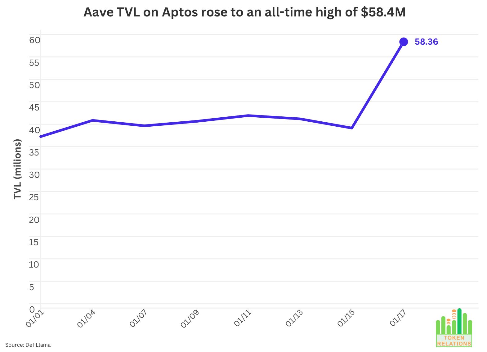 Aave TVL on Aptos rose to an all-time high of $58.4M on Jan. 17