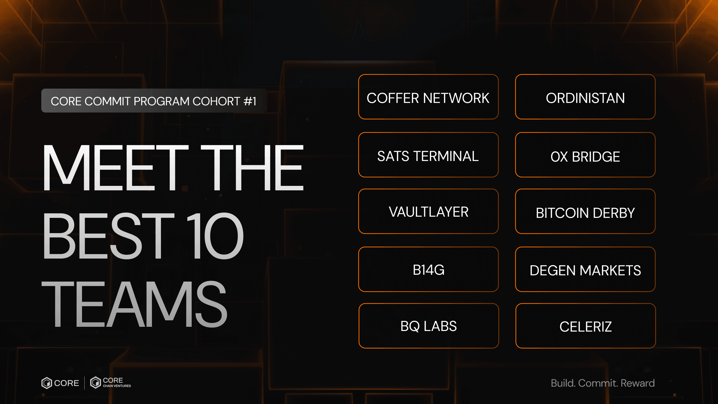 These teams were chosen from a pool of 144 applicants and represent a range of projects across BTCfi, infrastructure, and more.