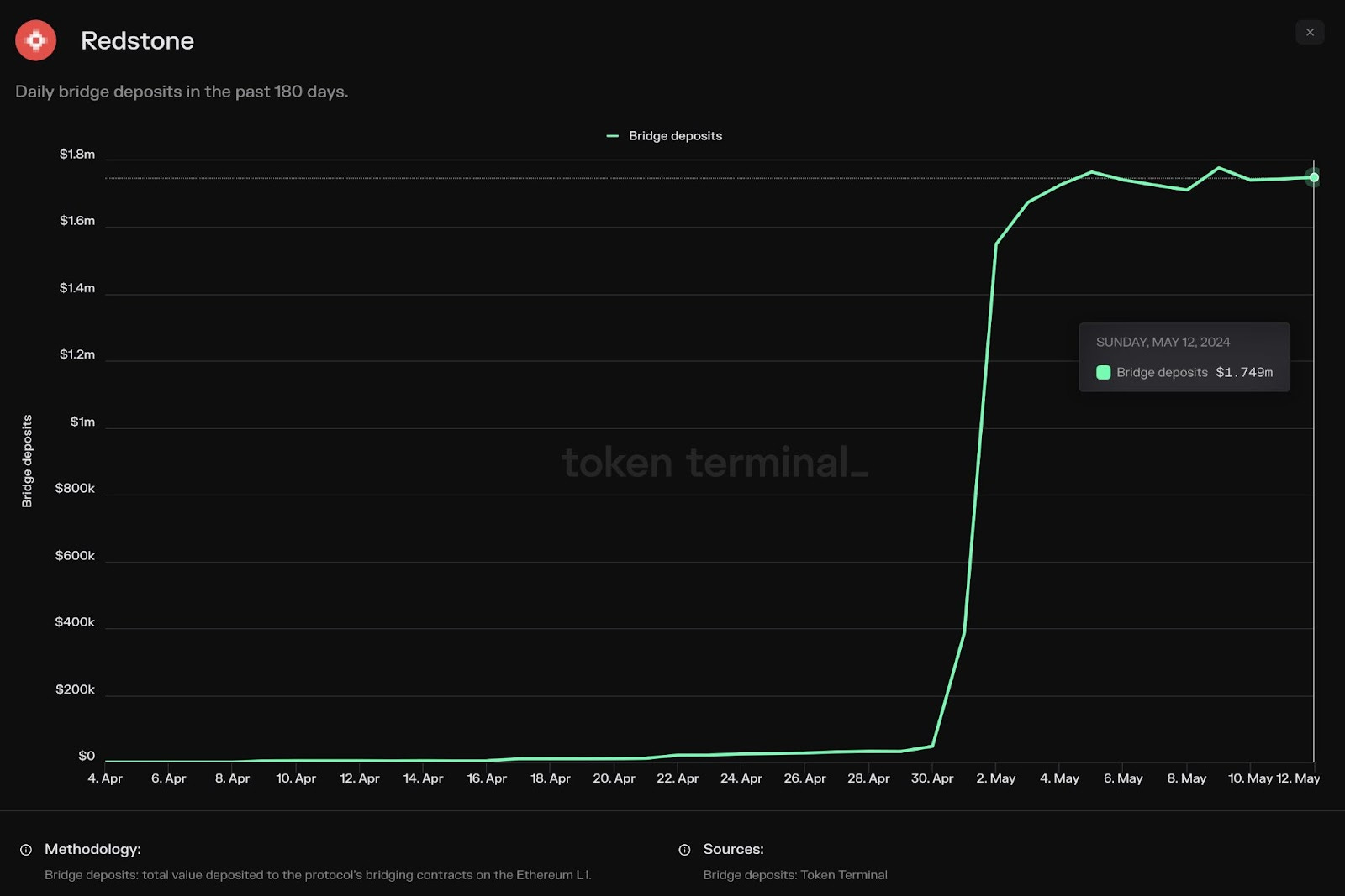 The recently launched Redstone chain had $1.8M in assets bridged, signaling increased interest in onchain games, according to Token Terminal data