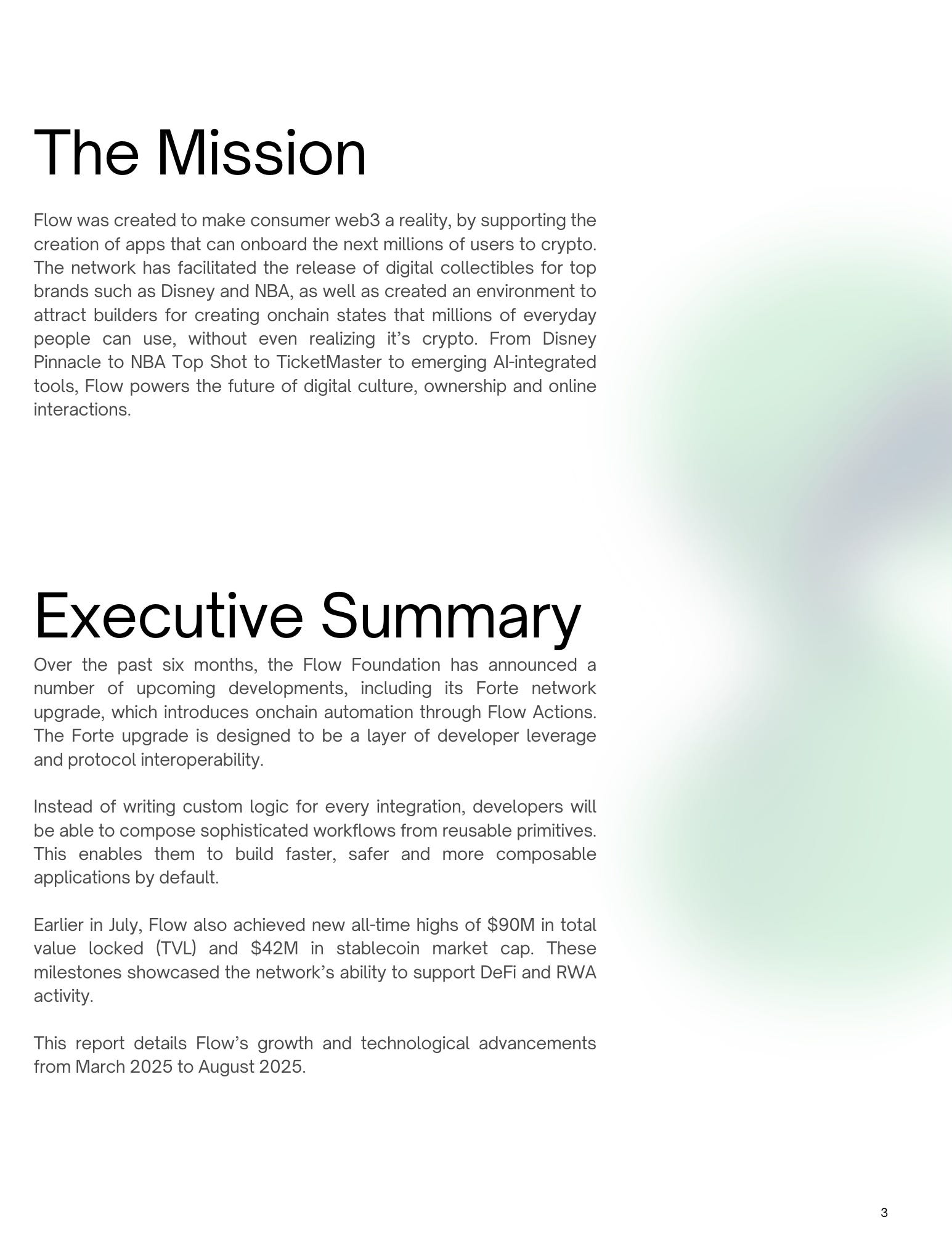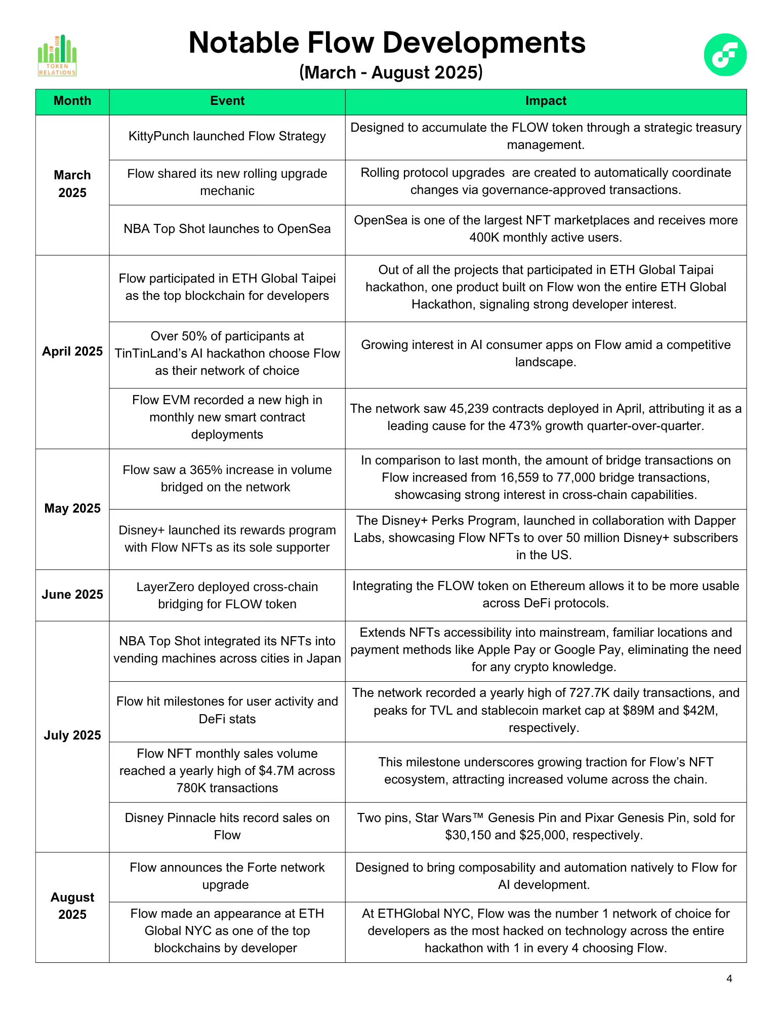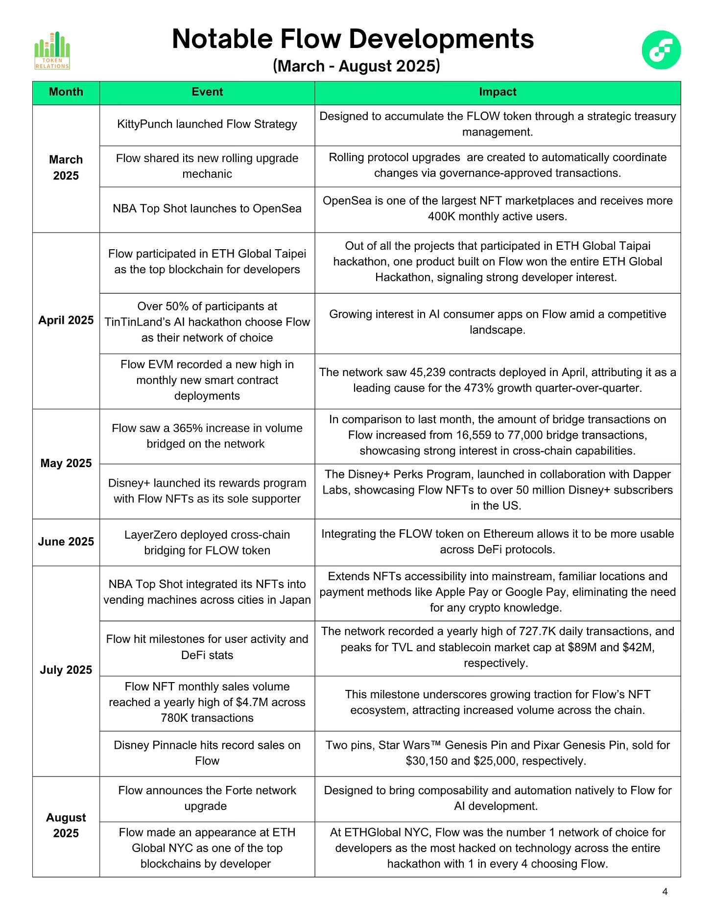 FlowFlow Biannual ReportMarch 2025 - August 2025 Ecosystem Overview Token RelationsAug 28, 202512ShareWelcome to the Flow Overview.Every month, we’re diving into the Flow ecosystem developments to get up to speed on its latest updates, metrics, insights and more.Today, we’re sharing our Flow biannual report. Enjoy!