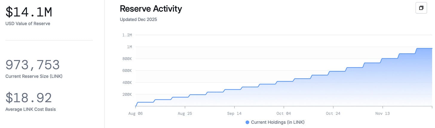 The Chainlink Reserve increased its holdings to $12M, or 973,753 LINK, over four purchases in November