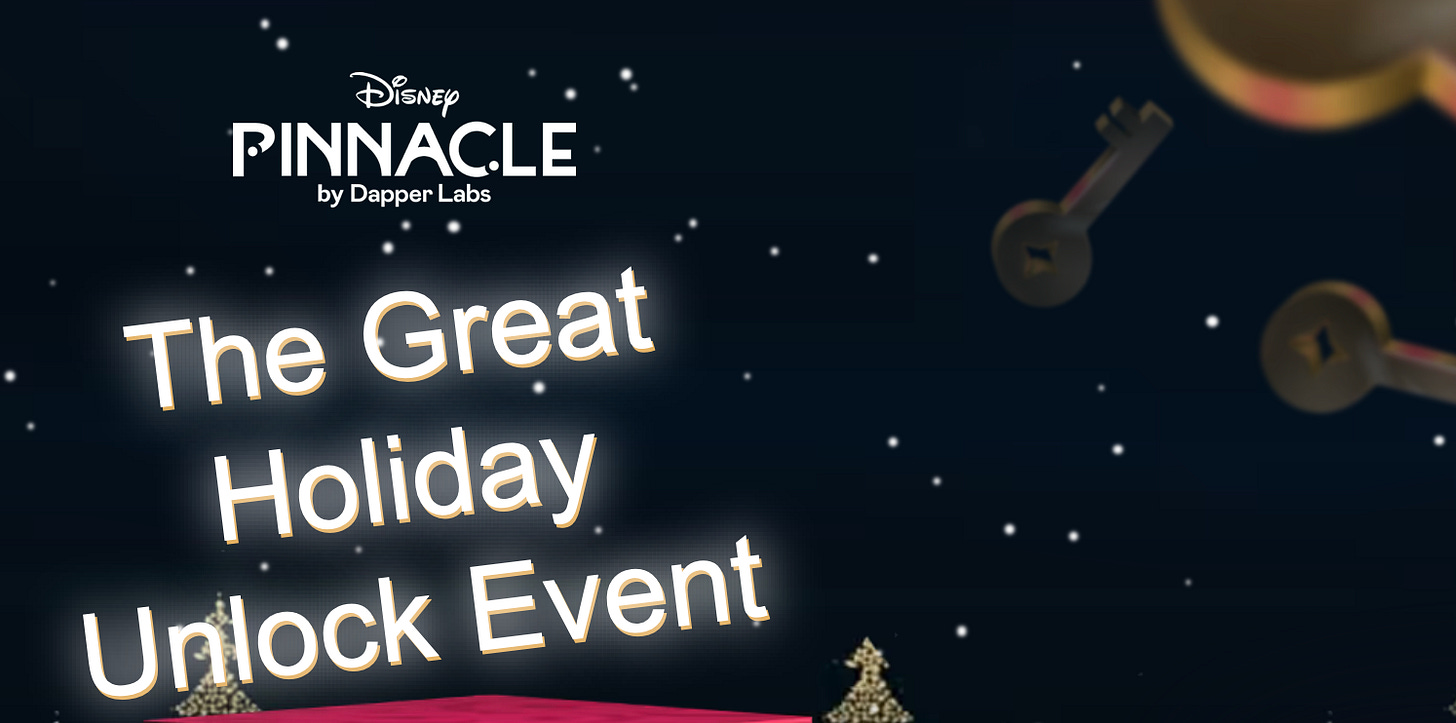 Zooming out, the holiday season usually sees sales skyrocket across all retail. Initiatives like Disney Pinnacle’s scavenger hunt can pave the way for broader integrations, where NFT tickets for events or AI-personalized pin drops can onboard all types of collectors.