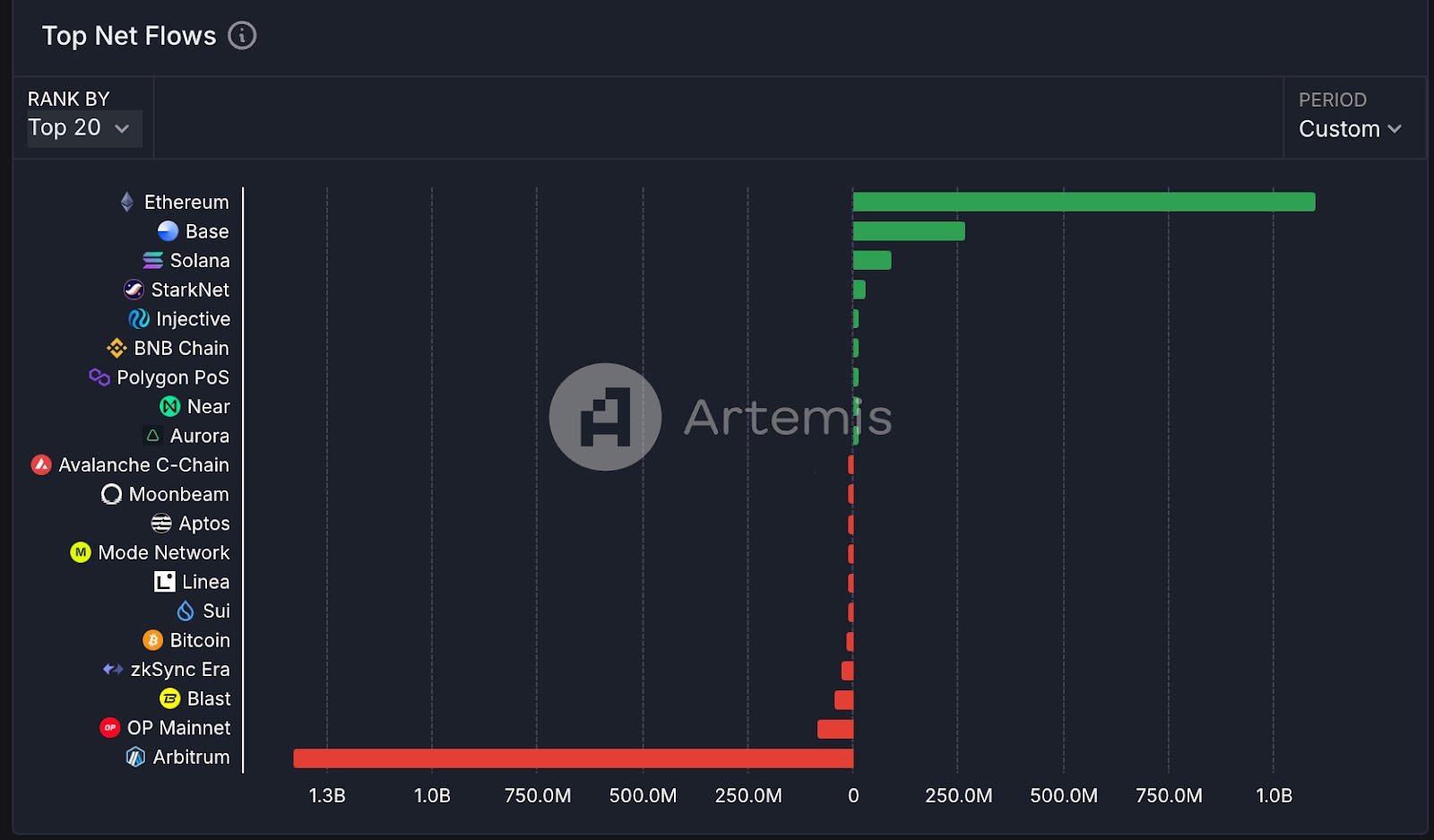 Injective ranked 5th in net flows across all blockchains at $12.6M, over the past 14 days, according to Artemis data