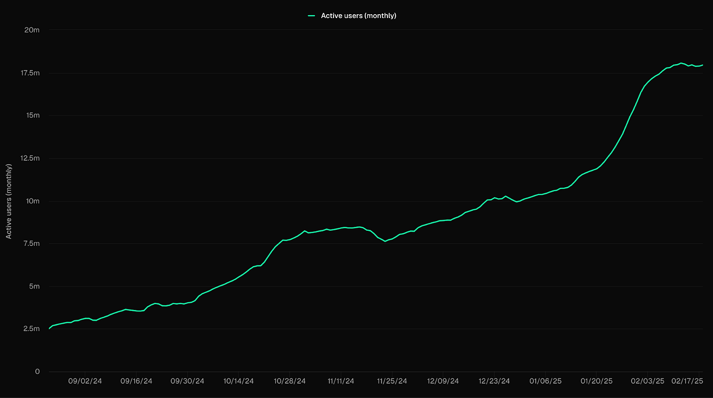 Aptos hit 18M active monthly users, an all time high for the network (shown below)